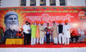यावेळी सकल मराठा समाज ठाणेचे अध्यक्ष नगरसेवक रविंद्र आंबरे, संजय केळकर, निरंजन डावखरे, नगरसेवक कृष्णा पाटील, राजेंन्द्र देशमुख व असंख्य शिवभक्त उपस्थित होते