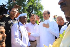 ओला दुष्काळ जाहीर करा किंवा नका करू. माझ्या शेतकऱ्याला मदत मिळालीच पाहिजे. त्यांनी केलेल्या मागणीला शिवसेनेचा पूर्ण पाठींबा आहे. शिवसेना सतत आणि सतत तुमच्यासोबत आहे. मविआतले मित्र पक्षही आहेत. काळजी करू नका, धीर सोडू नका, काही करून आत्महत्येचा विचारही मनात आणू नका, मी सोबत आहे या शब्दात शिवसेना पक्षप्रमुख व माजी मुख्यमंत्री उद्धव ठाकरे यांनी शेतक-यांना दिला.