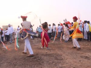 लाल मातीच्या आखाड्यात कुस्ती रंगली होती. त्याच्या पुढे हलगीचा कडकडाट होता आणि त्याच तालावर लेझीम पथकाने ठेका धरला. लवलवत्या पात्याच्या दांडपट्टाच्या चित्तथरारक कसरती सुरू होत्या. तर काही तरुणी लाठीकाठी या मर्दानी खेळांची प्रात्यक्षिके दाखवत होत्या. कोल्हापूरची शान समजल्या जाणाऱ्या, तुरा खोचलेल्या भगव्या फेट्यातील दहा हजार कार्यकर्त्यांची फौज नजरेच्या टप्यातही येत नव्हती.फेटयांच्या लांबच्या लांब रांगा दिसत होत्या. सगळं वातावरणच भगवामय झाले होते, अस्सल मराठीमोळी संस्कृतीचे दर्शन राहुलजींना घडवत कोल्हापूरकरांनी भारत जोडो यात्रेचे जोरदार स्वागत केले.