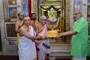 शृंगेरी शंकर शारदा पिठाचे जगद्गुरू शंकराचार्य भारती तीर्थ यांच्या सन्यास दीक्षेचे यंदा पन्नासावे वर्ष असून त्यांच्या प्रेरणेने मंदिरातर्फे धार्मिक अनुष्ठानाशिवाय अन्नदान व वैद्यकीय सेवा देण्याचे कार्य केले जात असल्याचे त्यांनी सांगितले. मंदिरातर्फे गरजू रुग्णांसाठी वैद्यकीय सेवेकचे मोठे कार्य केले जात असून आतापर्यंत १ लाख लोकांनी त्याचा लाभ घेतला असल्याचे त्यांनी सांगितले.
