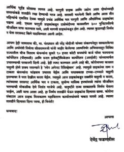 अनेकांनी ऑनलाईन वीज बिले भरली असतानाही त्यांना वाढीव बील देण्यात आले आहे. काहींना तर दहा-दहा हजार रूपयांपर्यंत बीले पाठवण्याचे ‘प्रताप’ वीज कंपनीने केले आहेत. औद्योगिक ग्राहकांचीही तीच अवस्था असून तीन महिने उद्योग बंद असतानाही त्यांना भरमसाठ वीजबिल आकारण्यात आले आहे. घरगुती ग्राहक आणि उद्योग अशा दोघांच्याही समस्यांकडे तातडीने लक्ष देण्याची गरज आहे. सरासरी भरलेली बिले आणि आता तीन महिन्यांचे एकत्रित बिल यामुळे प्रचंड आर्थिक भार या ग्राहकांवर पडला आहे. खरे तर घरगुती ग्राहकांकडून लॉकडाऊनच्या काळातील 300 युनिटपर्यंतचे वीजबिल माफ करण्यात यावे, अशी मागणी जनतेकडून केली जात आहे त्याचा विचार सरकारने करावा, असेही फडणवीस म्हणाले.