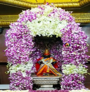 महाराष्ट्राचे आराध्य दैवत वारकरी संप्रदायाच्या लाडक्या विठुरायाला आषाढी एकदशीनिमित्त फुलांनी सजवण्यात आले आहे. फुलांनी सजलेल्या सावळ्या पांडुरंगाची देखणी मुर्ती डोळ्याचे पारणे फेडणारी आहे.